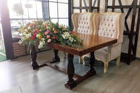 Cada pieza, elaborada en madera robusta y con detalles tallados a mano, refleja el estilo colonial característico de Oaxaca, aportando un aire sofisticado y atemporal a cualquier evento.